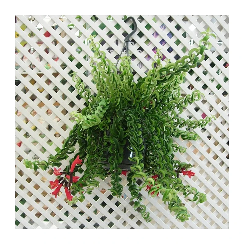Ramas colgantes con aspecto de tirabuzones caracterizan al Aeschynanthus ‘Twister’. Su parecido a un sacacorchos se debe a la forma recurvada y semicerrada de las hojas y a su disposición a lo largo de los tallos.