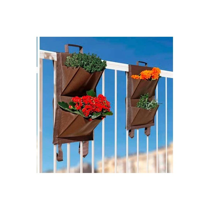 Con dos bolsillos subdivididos en espacios para 4 plantas.