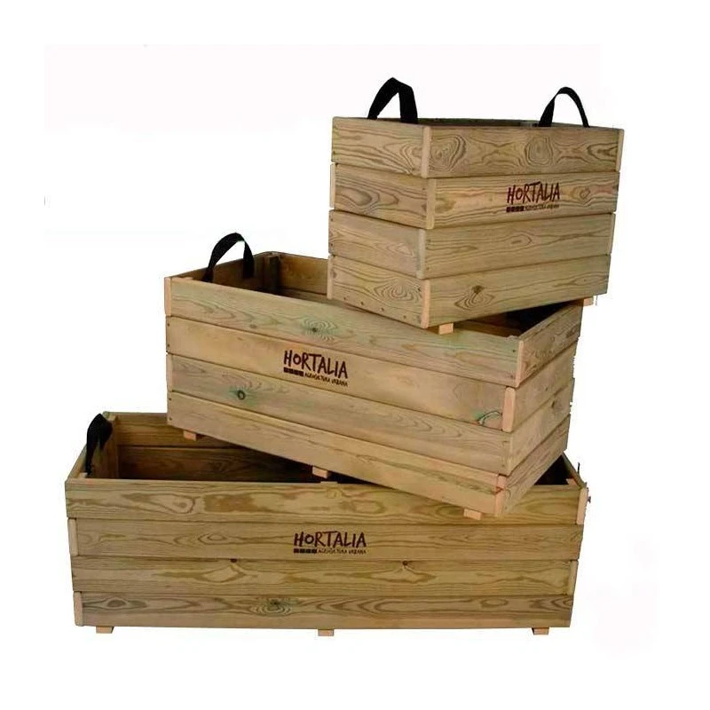 Hortalia nos ofrece su colección de jardineras de madera ghio. Diseño rústico para embellecer cualquier rincón de su hogar, jardín, trabajo, etc… Fabricado con madera de pino nórdico.