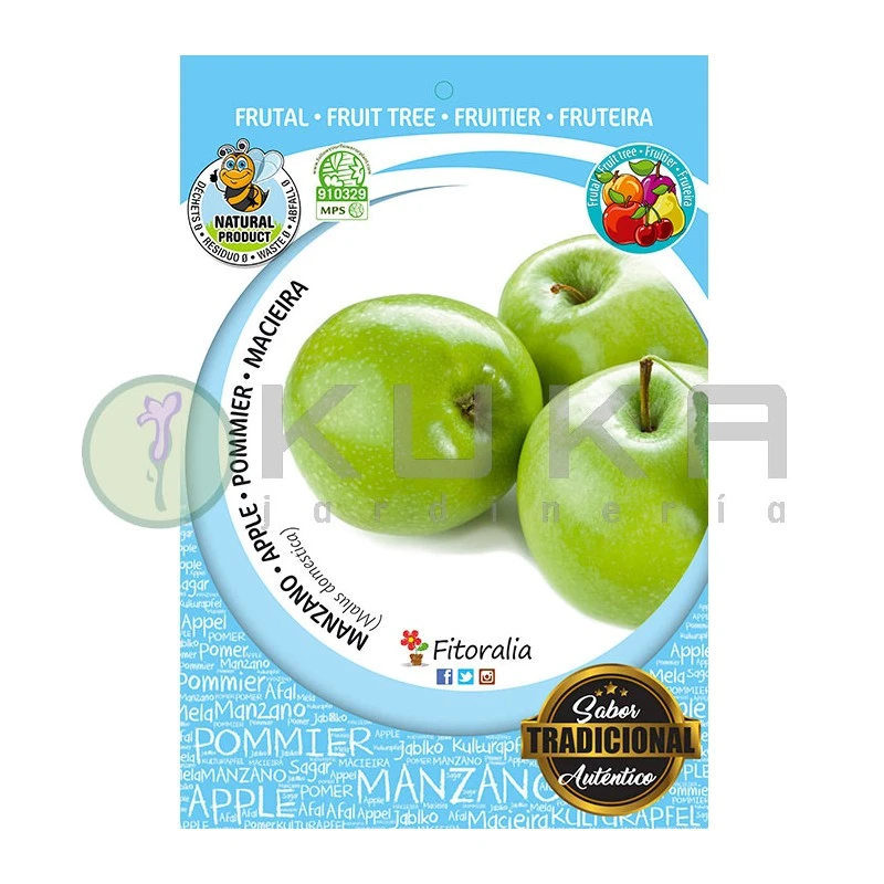 Manzano G. Smith. Manzano de frutos de un color verde intenso y formas muy redonda y carne blanca, muy crujientes y jugosa con sabor un punto ácido que la hace característica. Cosecha Noviembre – Diciembre.