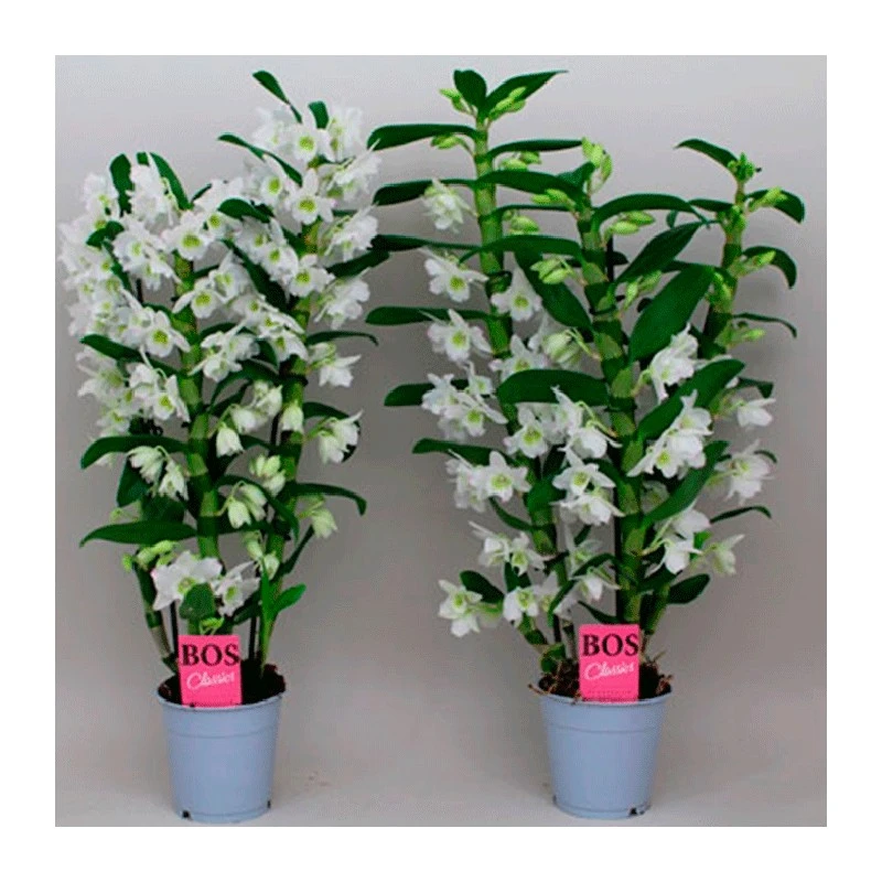 Orquidea dendrobium nobile blanco decorada y en maceta de cerámica.